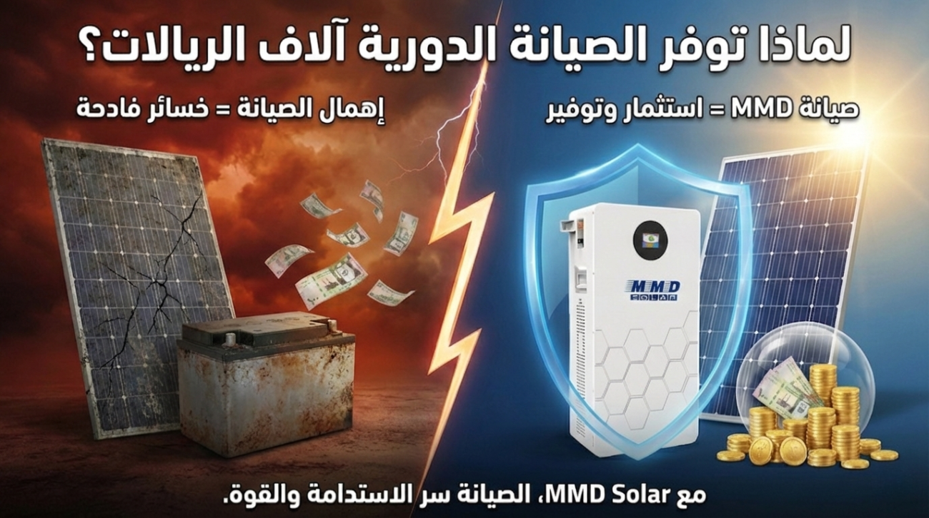 وليش حلول MMD Solar تفرق معك من البداية كثير ناس وشركات في اليمنيدخلوا مجال الطاقة الشمسية بحماس،يشتروا ألواح، بطاريات، محولات،ويدفعوا